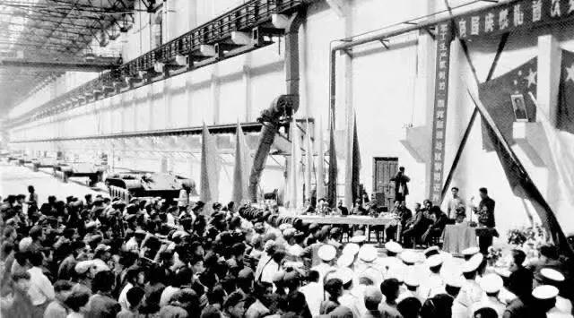 1959年8月22日,凝結著干部職工心血和汗水的32輛59式坦克,比建廠時計劃進度提前一年交付部隊,經(jīng)過嚴格考核試驗后參加了建國十周年國慶大閱兵。