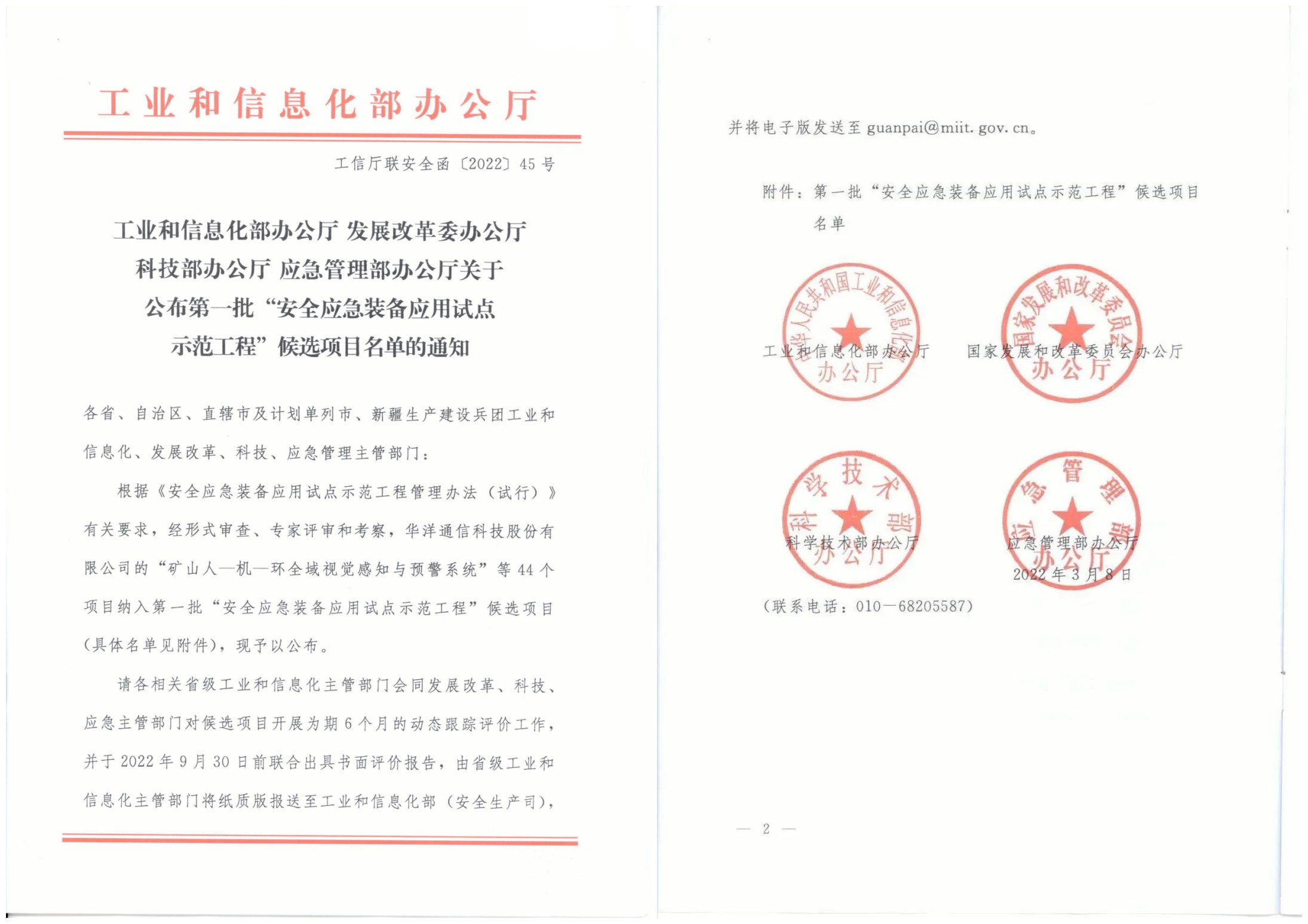 據了解,安全應急裝備應用試點示范工程申報工作由工業和信息化部、國家發展和改革委員會、科學技術部、應急管理部等四部門聯合開展,圍繞礦山安全、危險化學品安全、自然災害防治、安全應急教育服務四個方面,從安全生產監測預警系統、機械化與自動化協同作業裝備、事故現場處置裝備等16個重點方向遴選一批技術先進、應用成效顯著的試點示范項目。